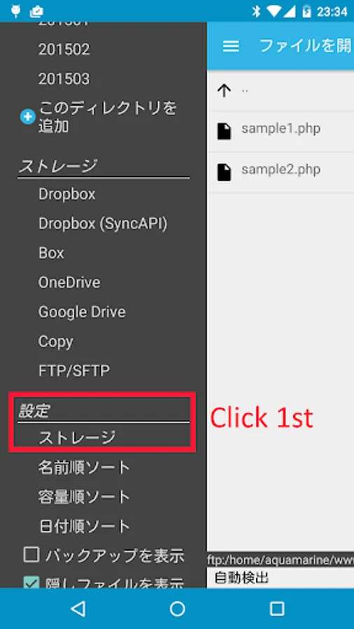 - Click menu icon on the top-left corner then click "Settings-Storage".