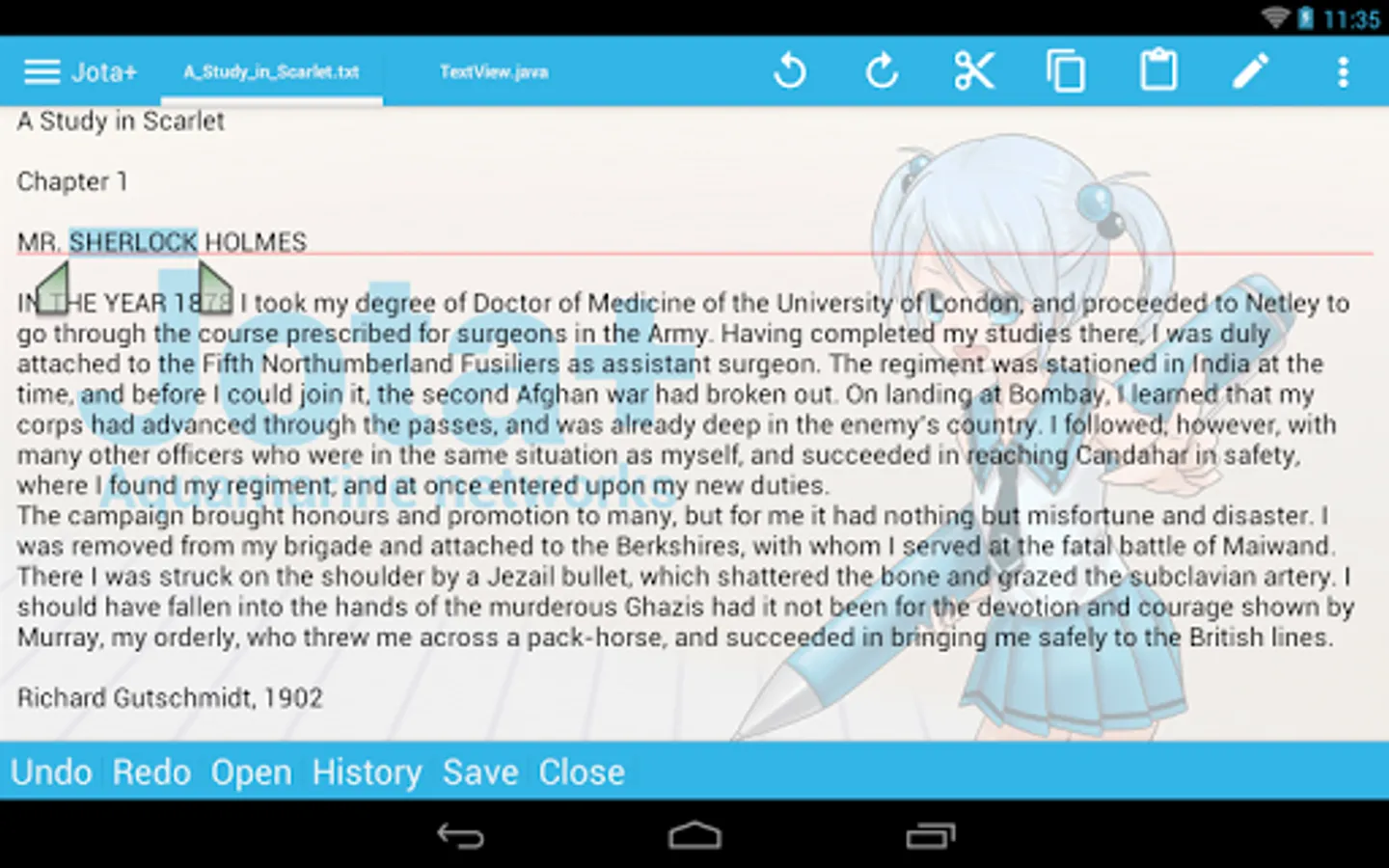 Jota+ is the best text editor for Android.