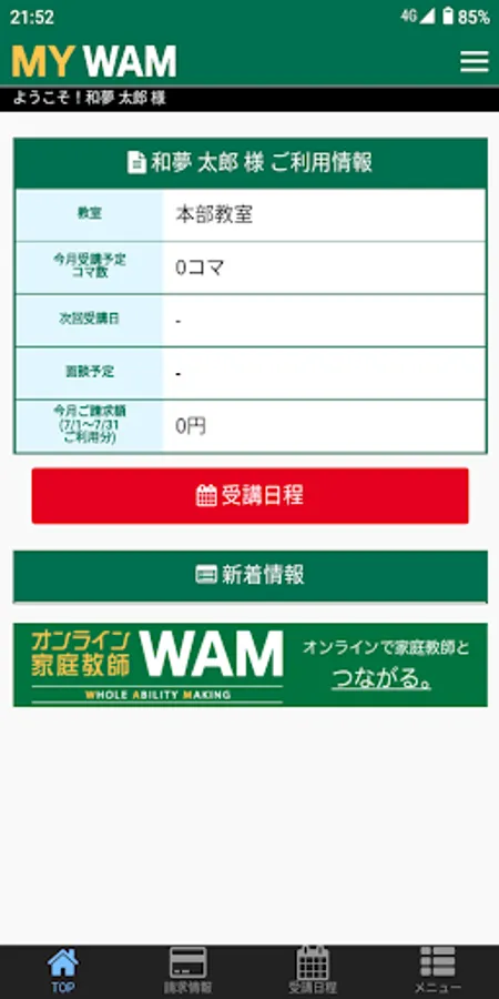 This is an application for members of the individual instruction Wam. You can easily view the member's class schedule and monthly fees anytime, anywhere.