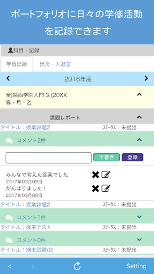 In addition to it, as is characteristic of the University of the portfolio, each department or class person in charge of the university, so you may want to register a part of the record of the above activities in your portfolio, that the contents of everyone to make sure you can also.