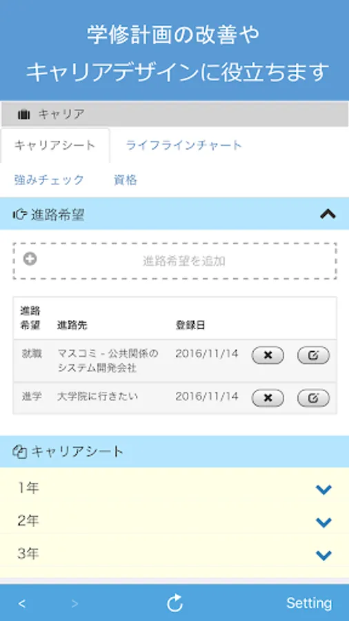 Guests can work hard to acquire the expertise to take classes after enrollment, study abroad, club activities, and work together to, such as the improvement of language skills, I think that there can be a part-time job or volunteer. When was these activities, using your own personal computer or smart phone, you can make a record and look back activities.