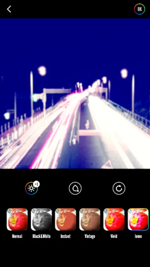 - 8 excellent filters, tweaking brightness, blur, rotating and more functions.