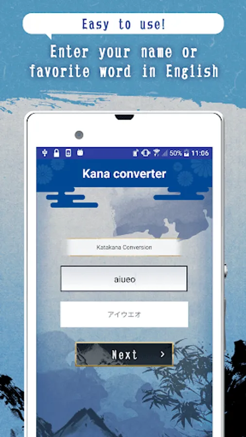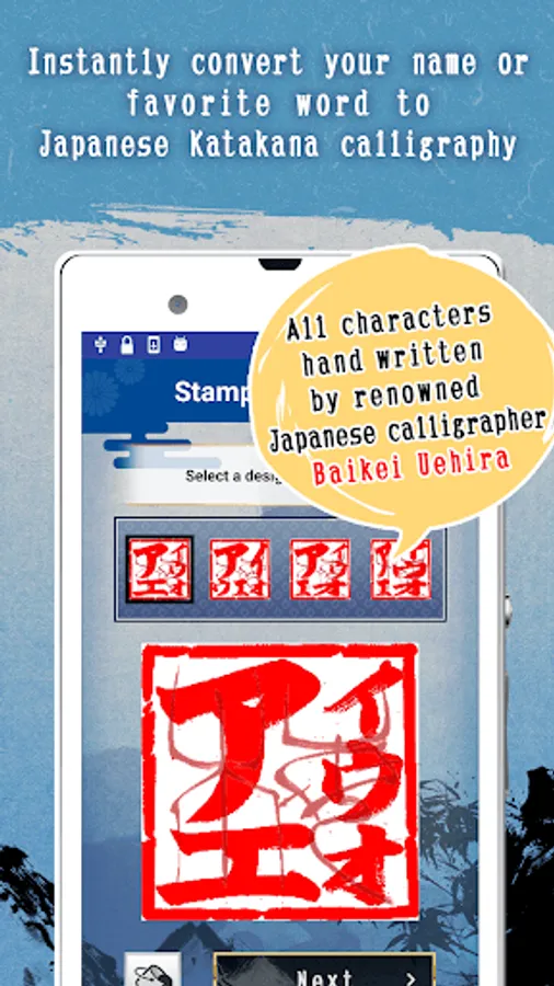 This app is super easy to use. Just type your name in English and it is automatically transformed into Japanese. Presto, you have your own original stamp to download.