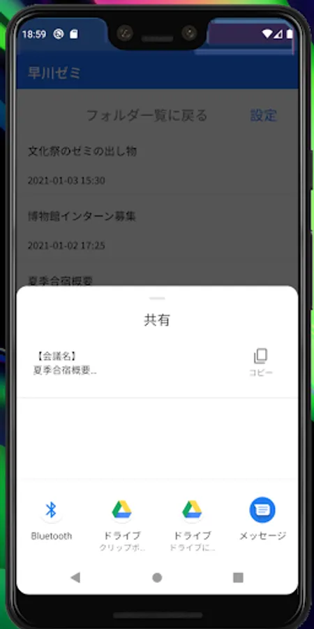 The created minutes can be sent / saved as text data to SNS or clipboard with the sharing function!