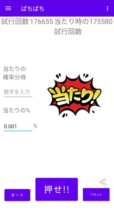 It is an application that can simulate the probability. You can also simulate with the probability of gacha etc. and share the result to share which probability you closed with which number of trials.
