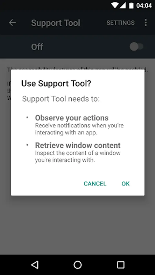 2. Accessibility screen is opened. Please select the "Support Tool" item from the list.