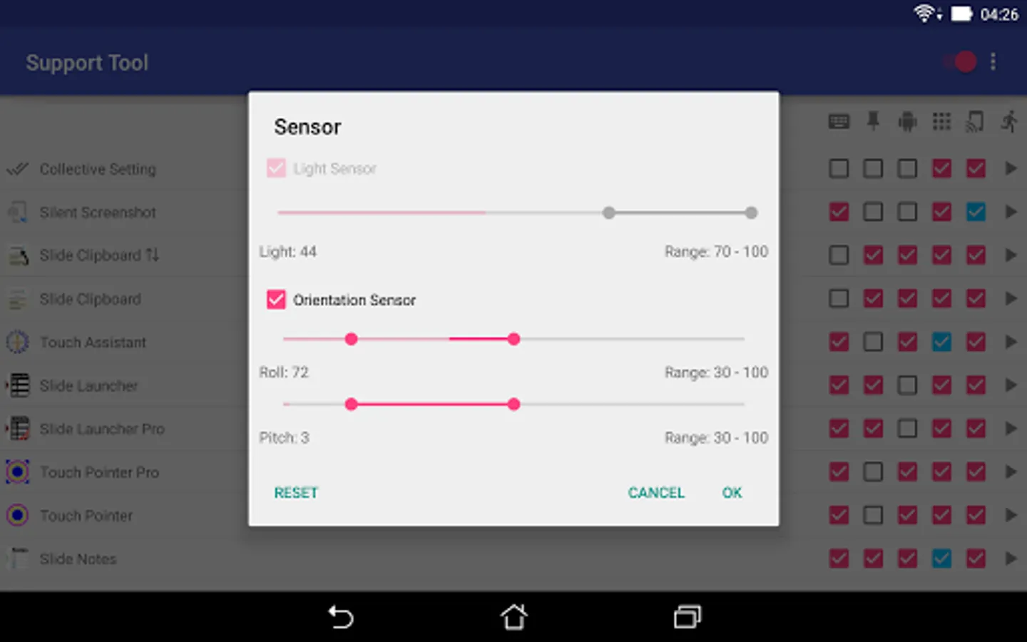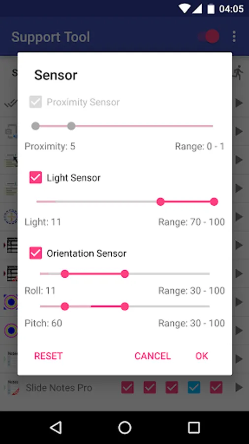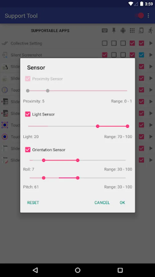 If the sensor value is in the specified range, supportable app overlay is disabled.