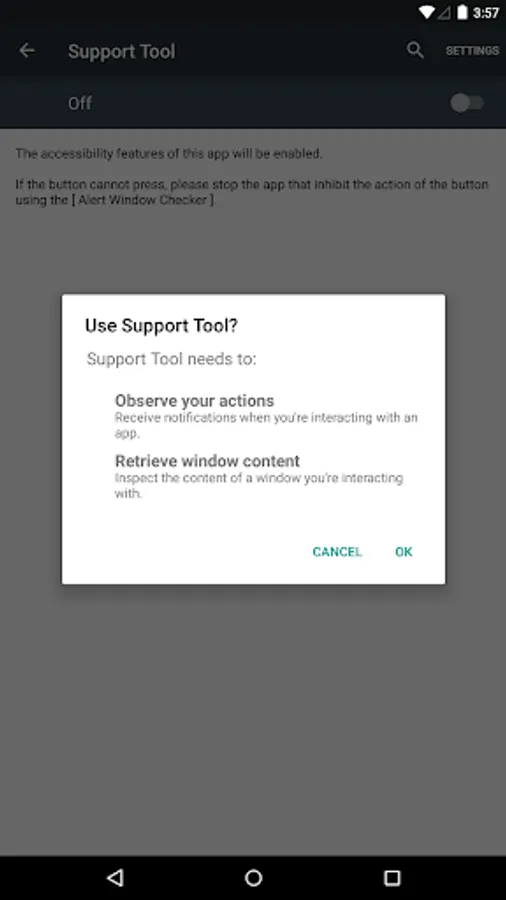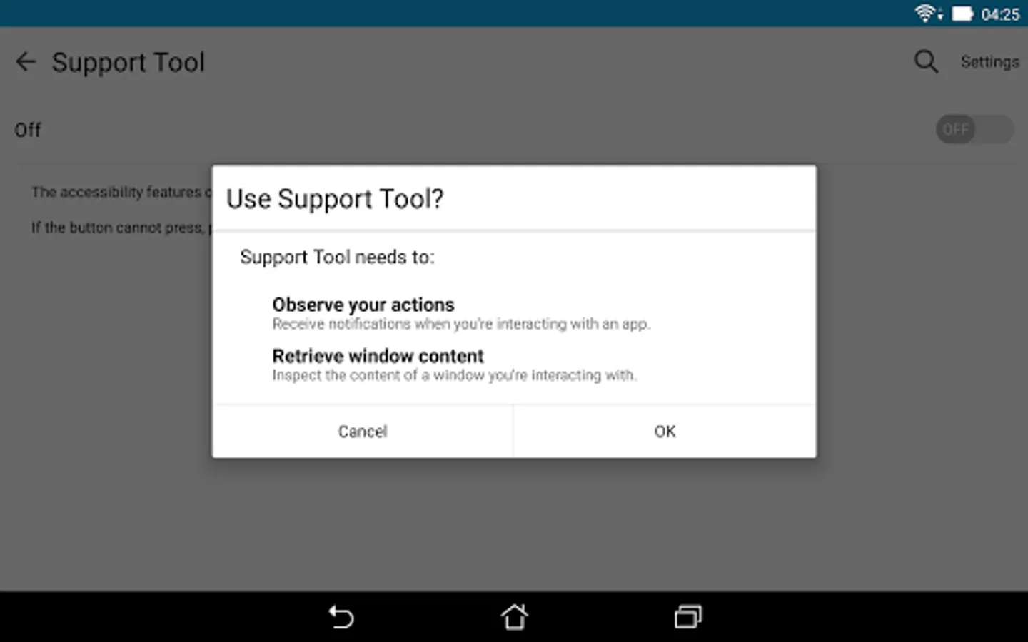 4. "Use Support Tool?" dialog is displayed. Then choose OK button.