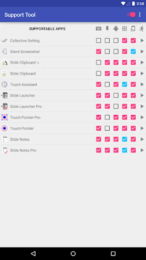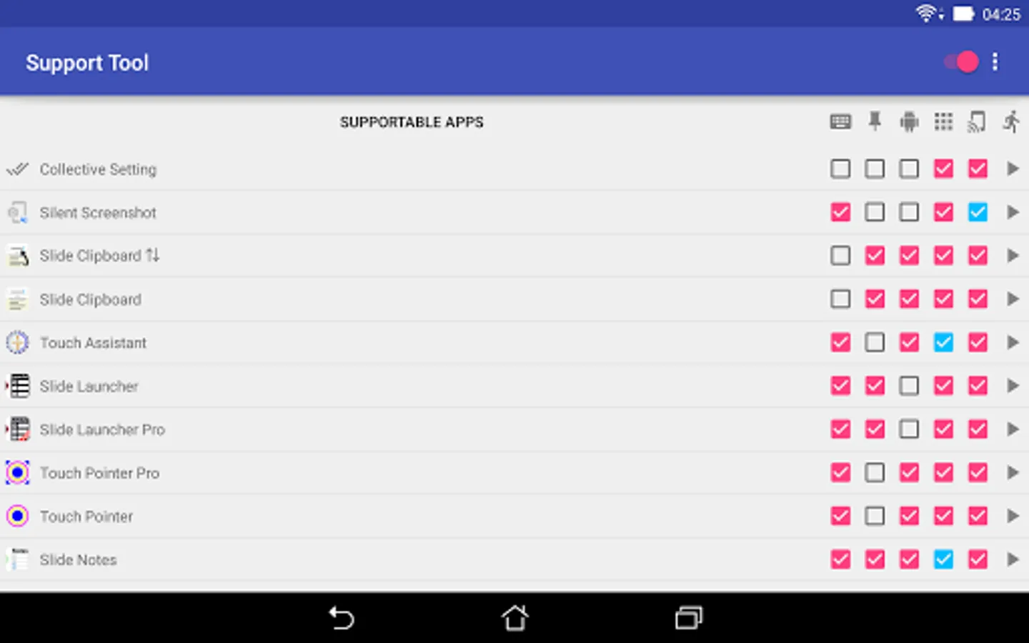 1. Turn on the switch on top-right corner in the screen of the "Support Tool".