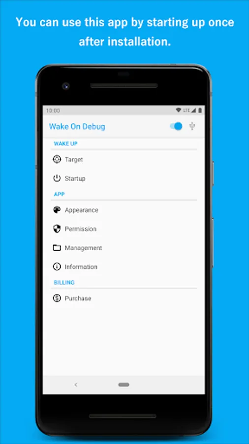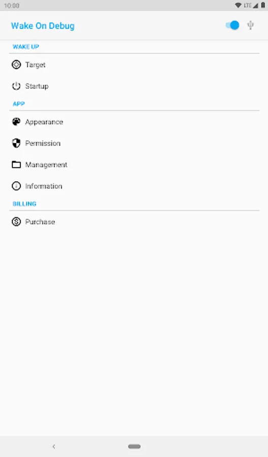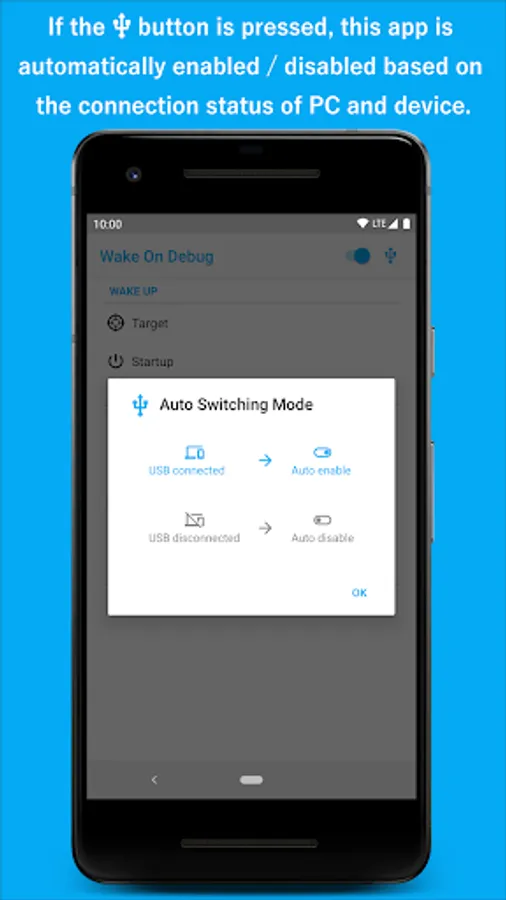 * The app can automatically turn itself on / off based on the USB connection status, thus avoiding unnecessary wake-up.