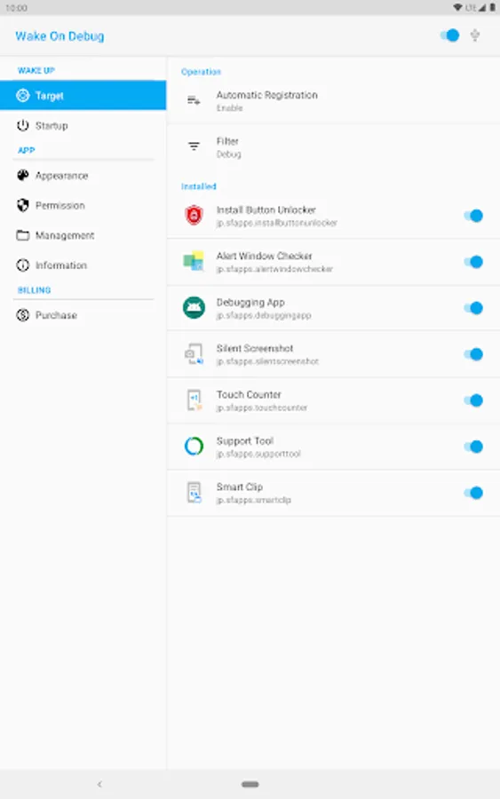 * Automatic Registration: This is a setting for whether or not to automatically register a debug app when newly installing it.