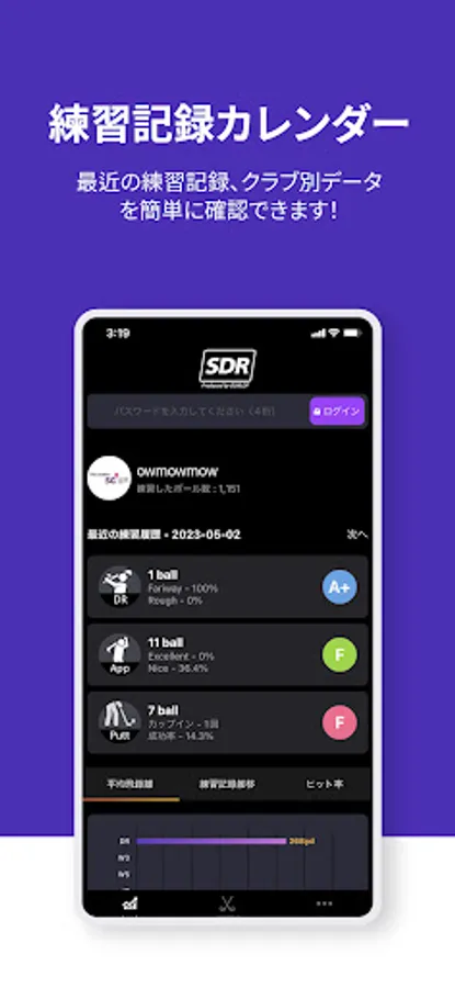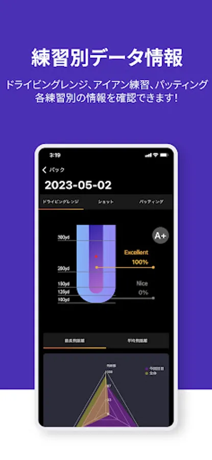 - You can check the shot accuracy rate to the target in iron practice and the cup-in rate in putter practice.