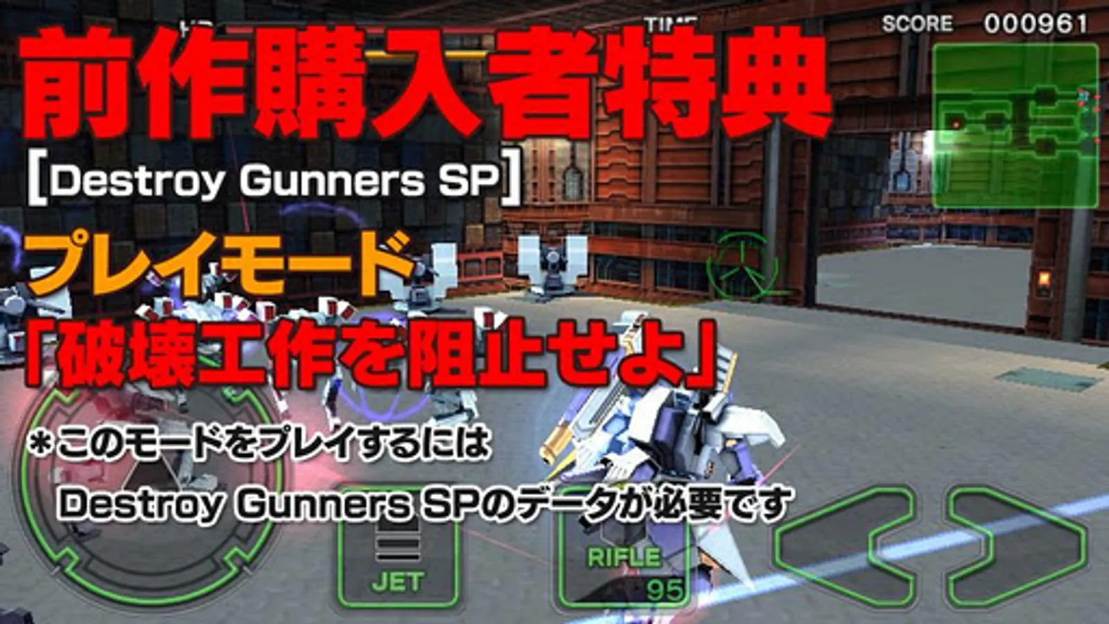 ・If you have previous title"Destroy Gunners SP",you can play additional special mission!