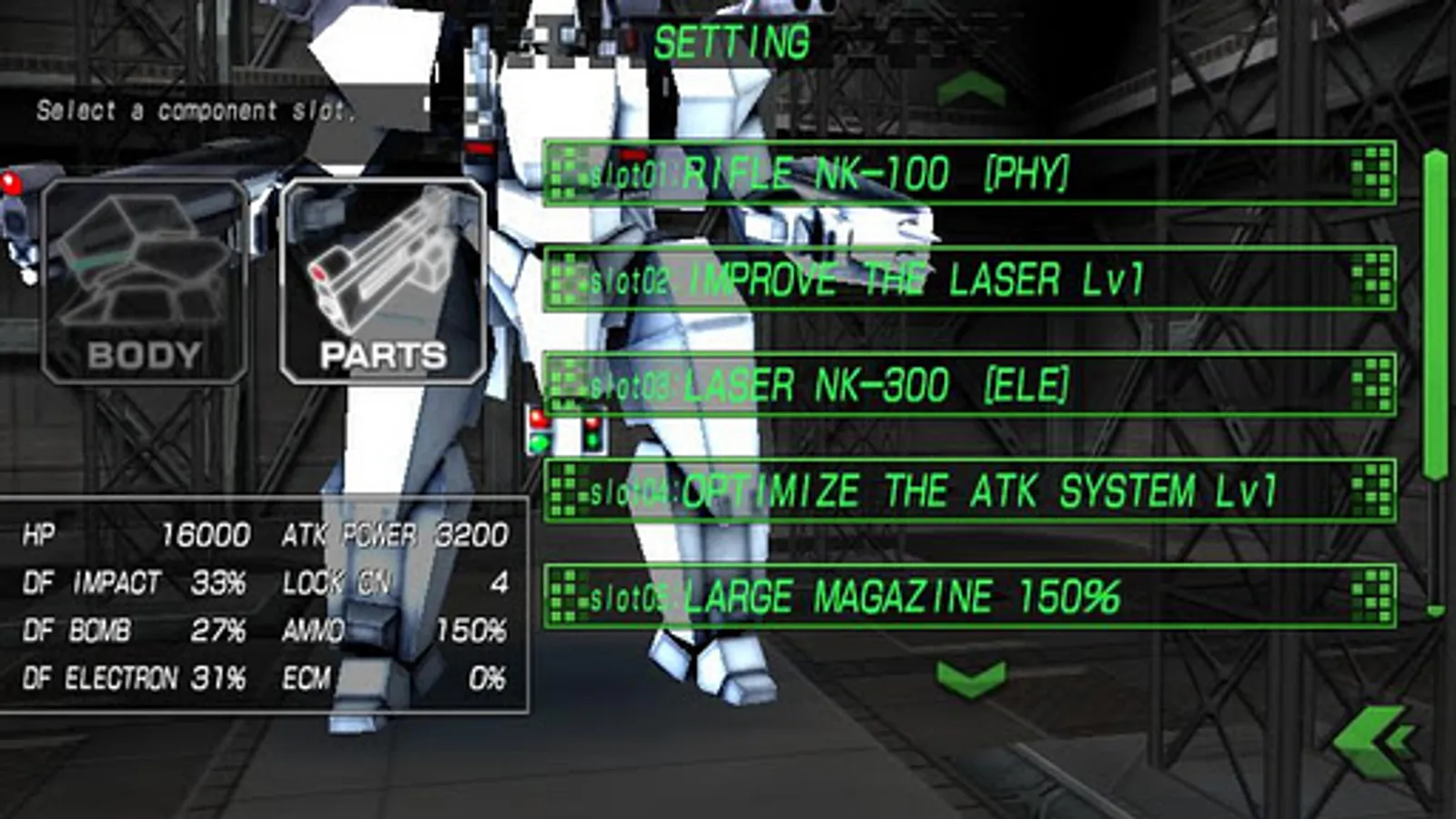 The player can customizes player's mecha(armed destroyer) to reinforce the mecha repeatedly and challenge more higher,severe missions!