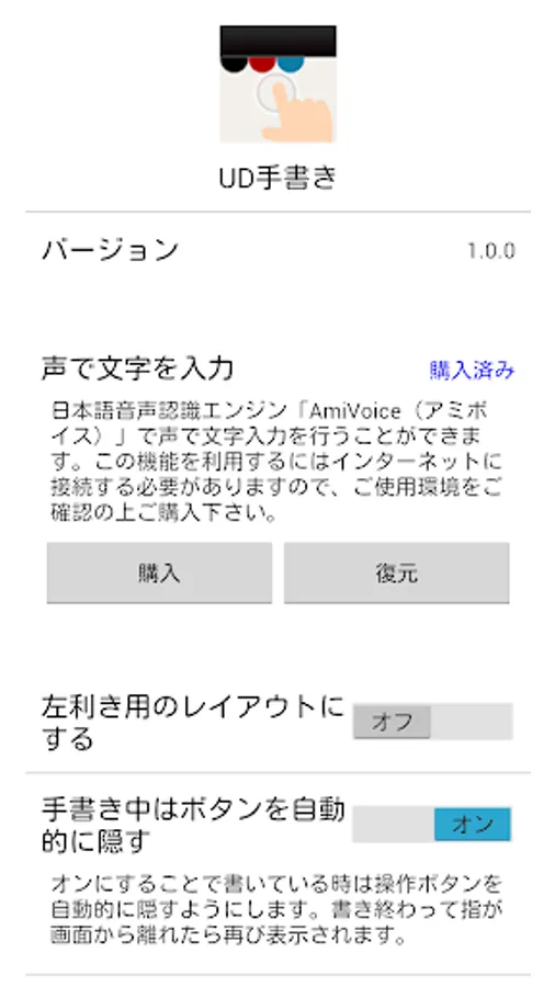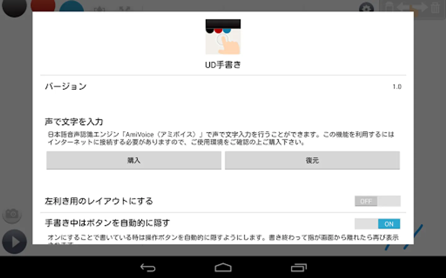 With the purchase of "input a character voice" add-on, you can write a letter in the voice instead of handwriting it using voice recognition engine Amivoice the (Amiboisu).