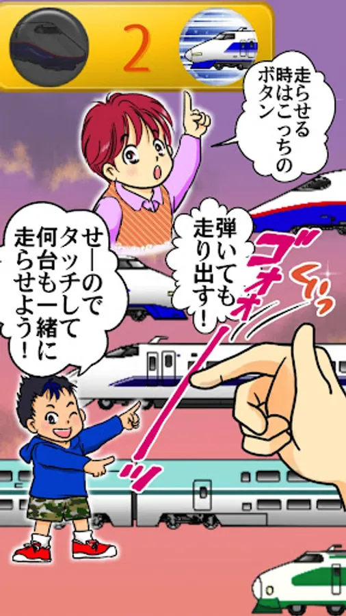 When the shinkansen trains that appears on the screen are touched, they start moving!