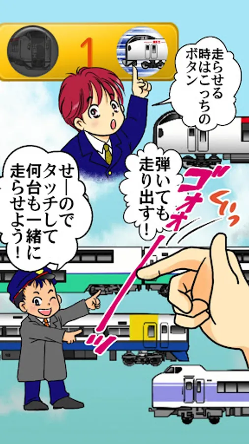 When the trains that appears on the screen are touched, they start moving!