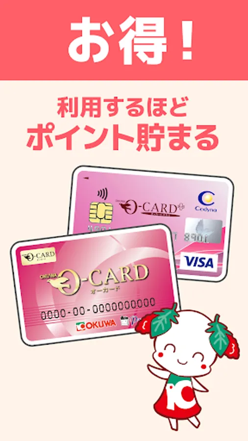 Anyone with an Ocard issued by Okuwa can use it completely free of charge without membership registration. You can use the cash register function to make safe and secure shopping with less contact with people and things, and at the same time, you can enjoy "poi activity" and "money earning" by enjoying contents such as coupons that accumulate a lot of points.