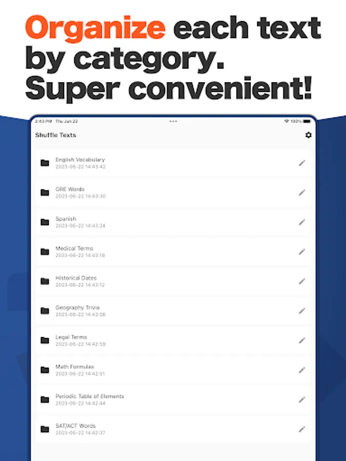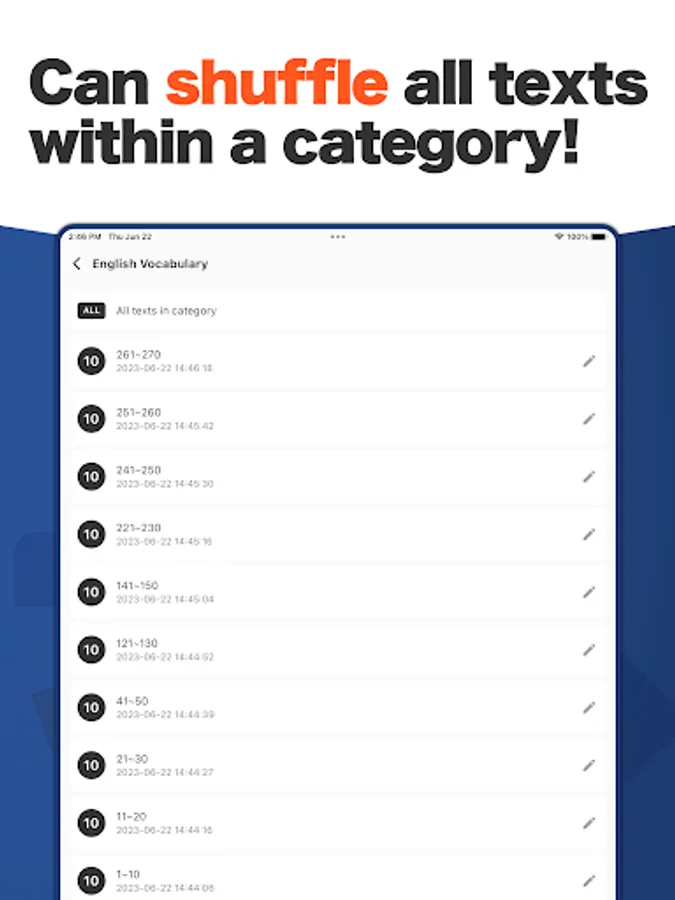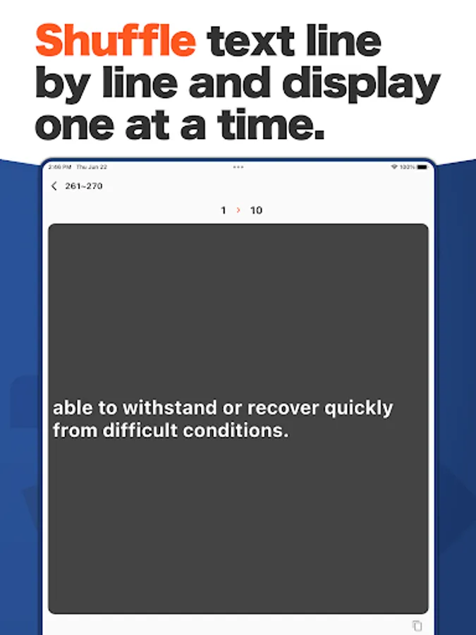 ・Once all the text is displayed, it shuffles again, so you can repeat many times