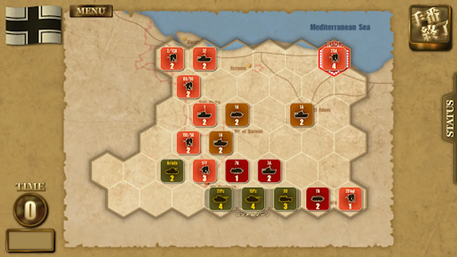 In 1941, the battle over Tobruk, a key point in North Africa, is a battle between the two armies! The German-African corps, which temporarily retreated due to the counterattack of the Allied Forces that occurred just before, began to act with the aim of regaining Tobruk by preparing the force. This battle is recorded in an analog game-like compact standard using dice and hexes!