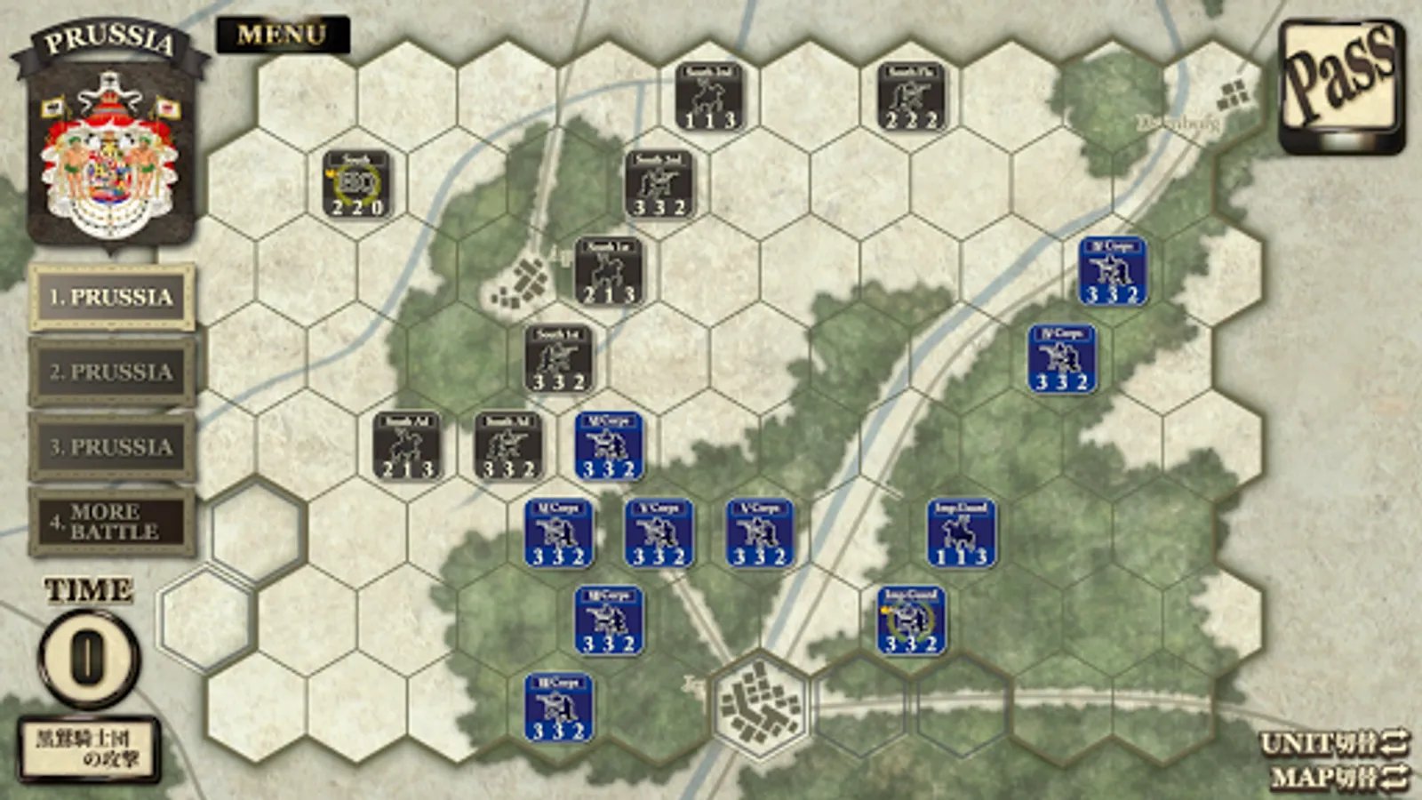 In 1806, a battle broke out between the French army led by Emperor Napoleon and the Prussian army, the best army in Europe raised by Frederick the Great! This series of battles is reproduced with a system using hexes and dice. Players control unit units to fight each battle.