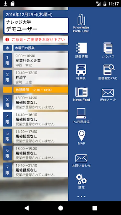 His lecture information and grades, of course, such as class cancellations information supplementary classes information and classroom change, so far the information that could not be seen to be logged on a computer, in real time, should be noted and in an optimized environment to the smartphone It can be seen, and to enrich the campus life.
