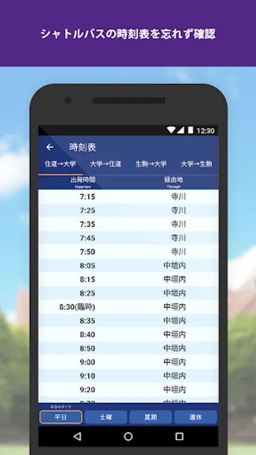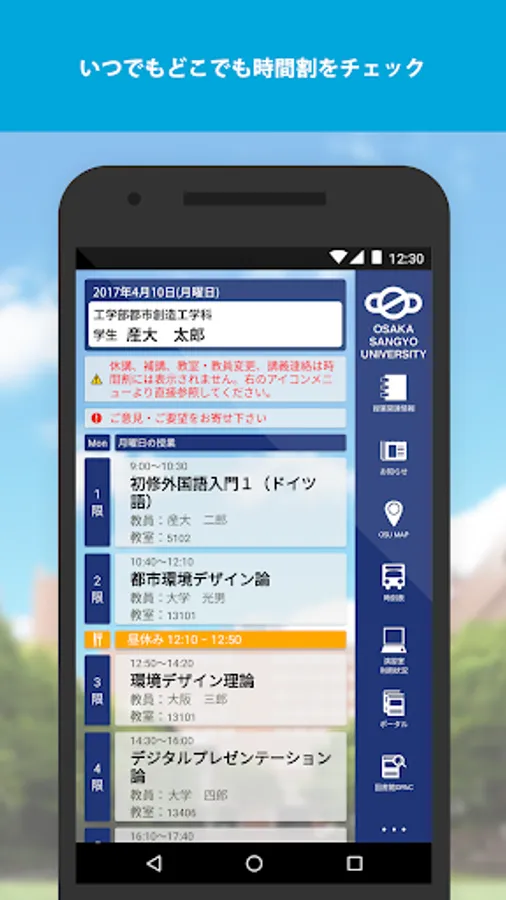 Sandai Mobile is an Android app to support students of Osaka Sangyo University.