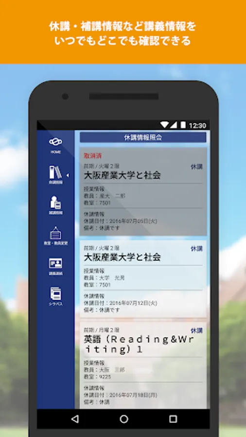 Check class-related information such as class cancellations, make-up classes, lecture notifications, classroom/teacher changes, etc.