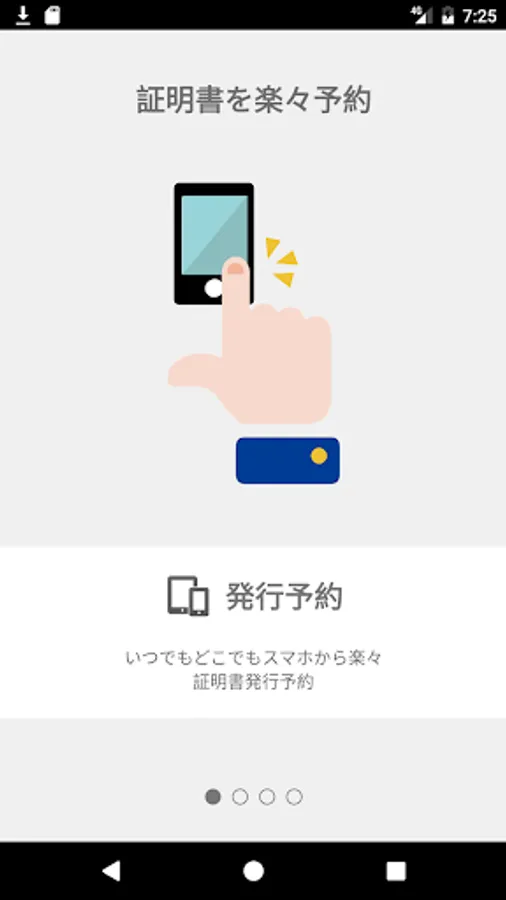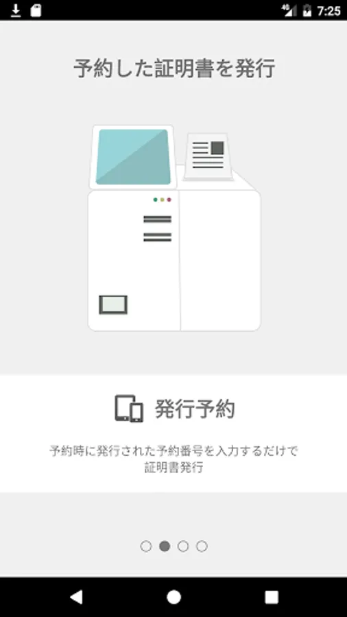 The purpose is to quickly issue the desired certificate with the issuing machine by pre-booking the certificate / application form to be issued by the automatic certificate issuing machine installed in the university using a smartphone or tablet. It is an application. You can make an advance reservation for the desired certificate / application form at your favorite time while checking the contents of the certificate. With the automatic certificate issuing machine, you only need to enter the reservation number sent at the time of reservation, so congestion at the issuing machine will be eliminated. You can also check the operating status and operating schedule of the automatic certificate issuing machines installed on each campus in real time.