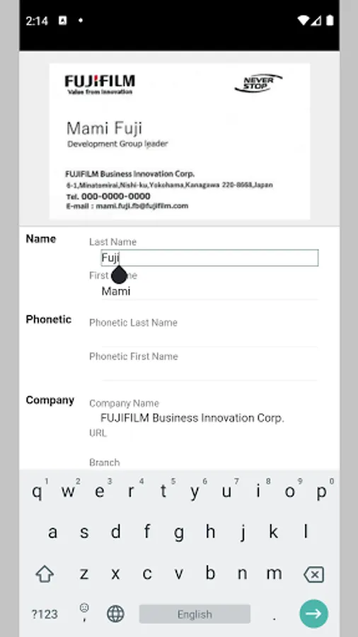 -Auto text recognition for business cards in multiple languages (by using OCR).