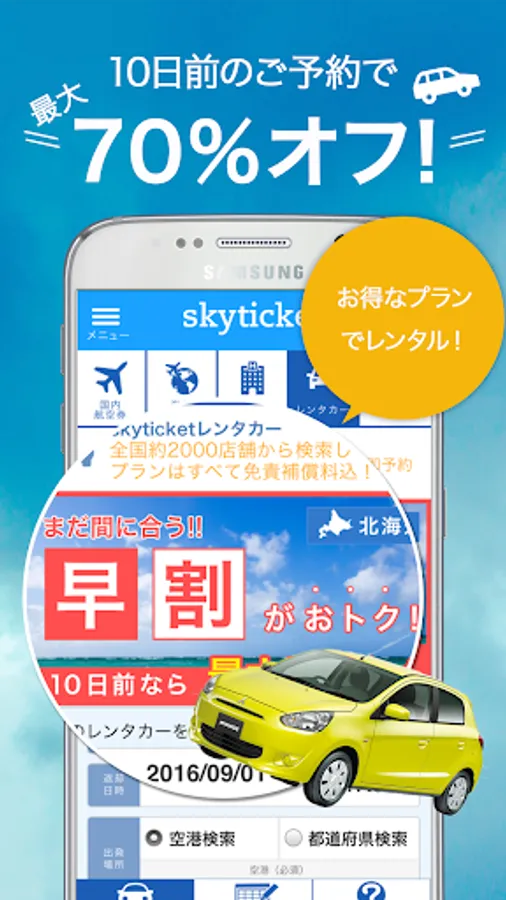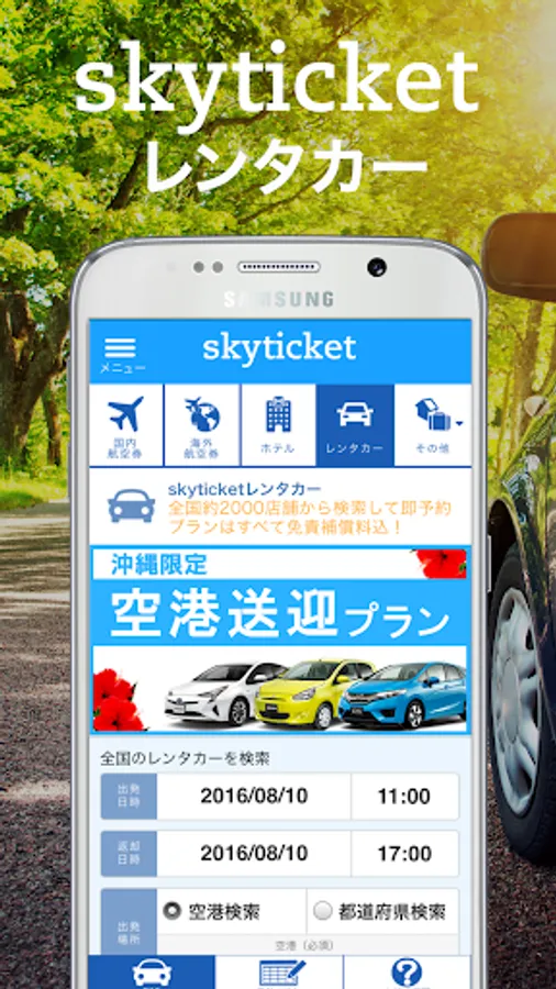 App version of the << country cheap car rental global search and reservation site of "skyticket car rental" >>