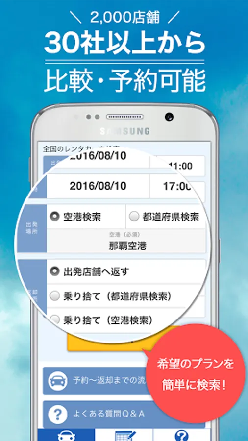 Easy reservations from all over the country about 2,000 stores a cheap rental car in the shortest 5 minutes!
