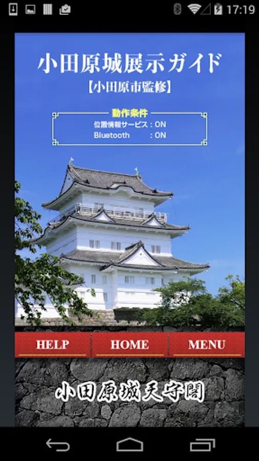 This app communicates with the beacons installed in Odawara Castle Ruins Park. Please turn on Bluetooth and use in a place with good communication environment.
