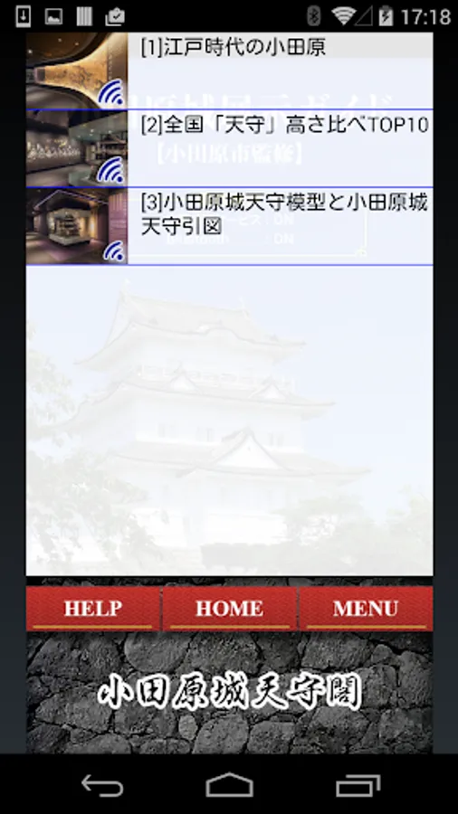 2. Spots are displayed on the list display screen when information such as attractions in Odawara Castle Ruins Park is detected.