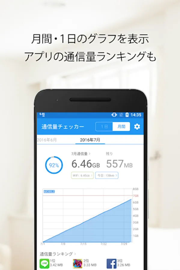 「通信量チェッカー」はシンプルかつ高機能な通信量チェックアプリです。