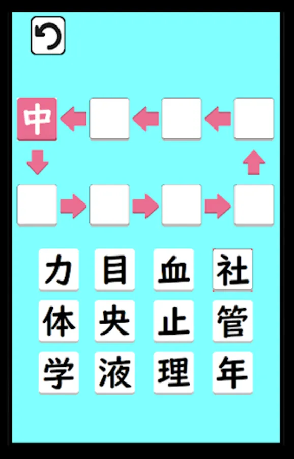 This is a brain training game that creates two-character idioms based on basic Chinese characters. Create two-character idioms based on the given kanji and connect them like a shiritori. If you make a given kanji into a two-character compound word, you can create several patterns, and based on those patterns, connect them in the direction of the arrow. It can also be used as a confirmation for studying idioms and kanji.