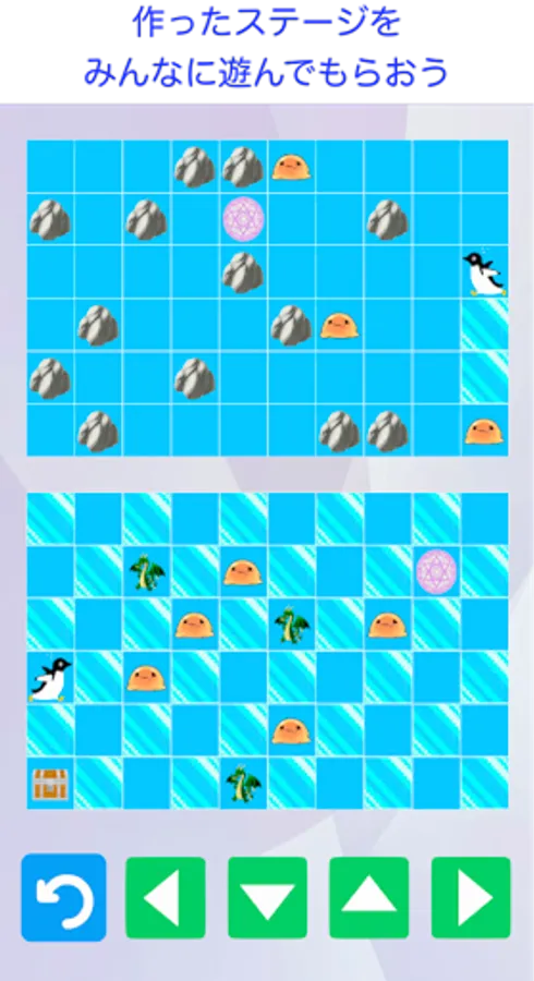 In "The World of Kagami", let's move the real world and the mirror world at the same time to escape Penguin, who was trapped in the mirror world, from the mirror world and return it to the original world. In addition to the prepared stages, create your own stage and play.