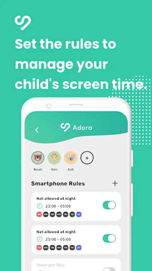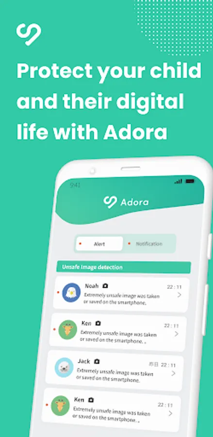 *This app is for PARENT's smartphone (please install "Adora Kids" on your child's device).