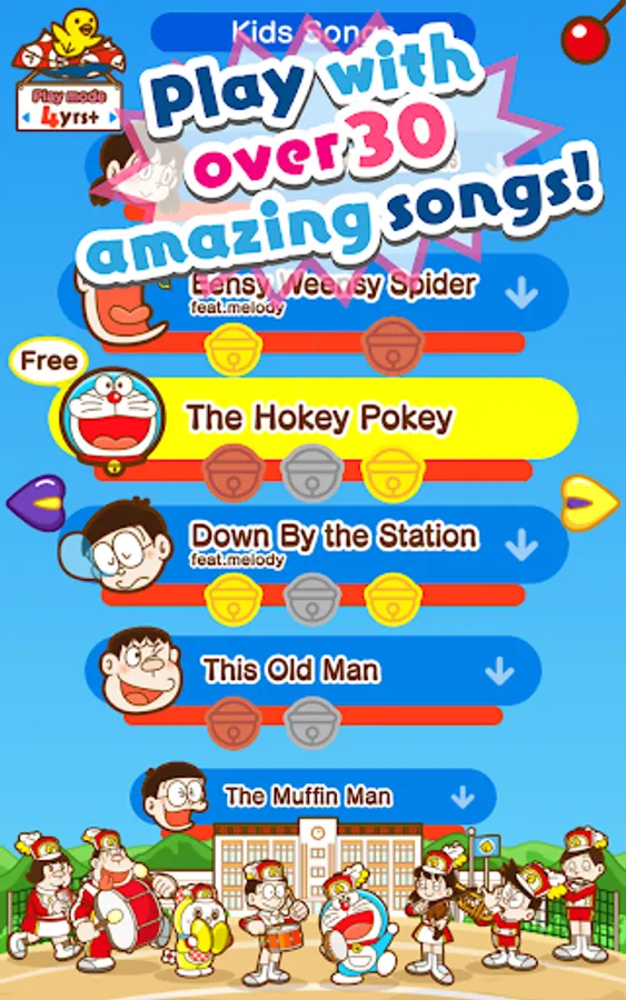 ◎Free to play - 4 songs can be played without additional purchase (The Hokey Pokey, If You' re Happy And You Know It Clap Your Hands, BINGO, ABC (The Alphabet Song))