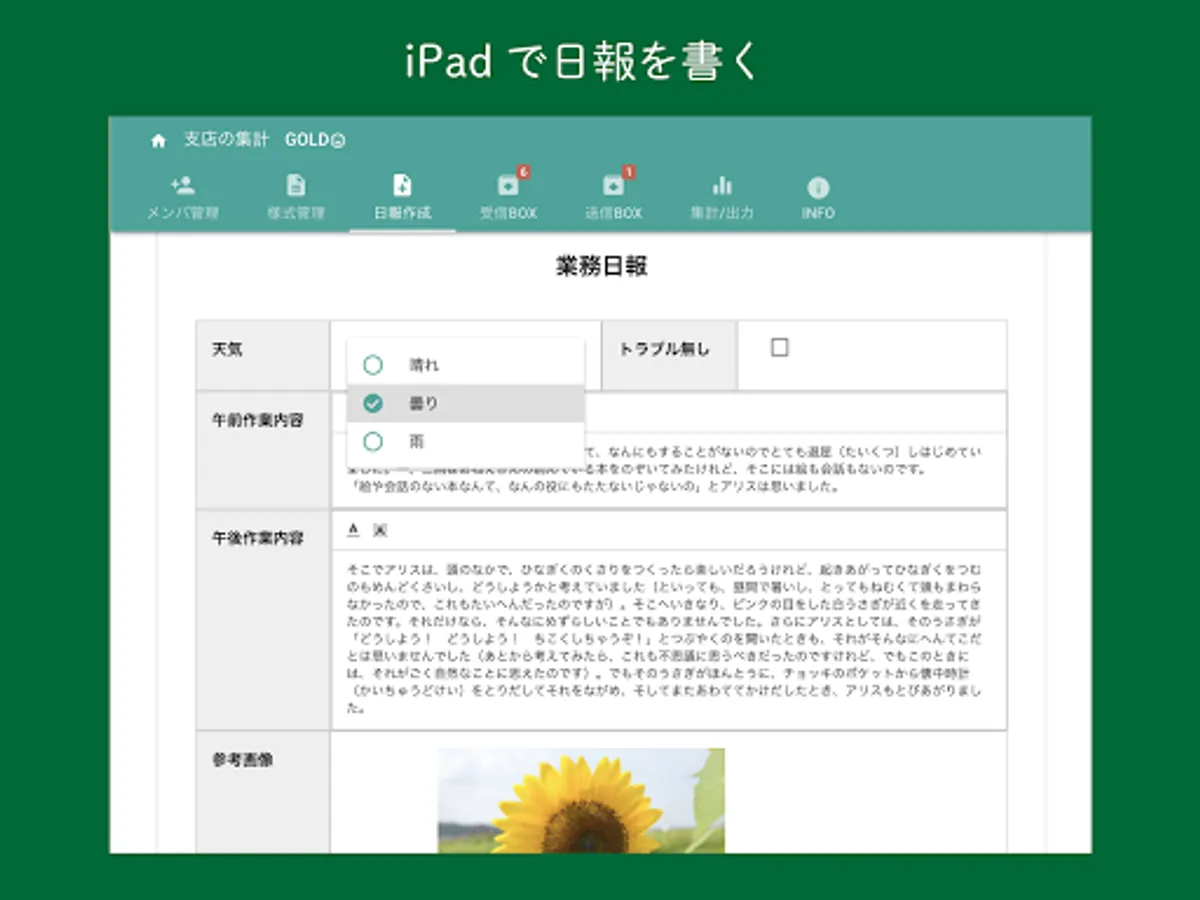 It is a daily report application that can be used from a PC, but can also be used from a smartphone or tablet.