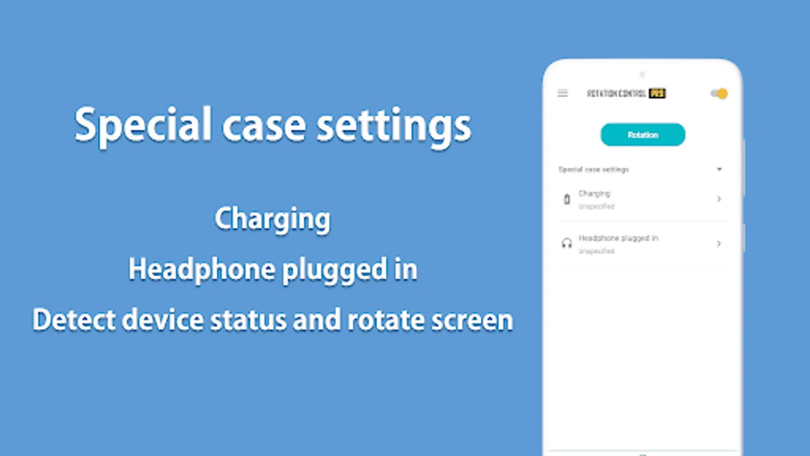 Detects when chargers or earphones are connected and rotates to your preset screen orientation.