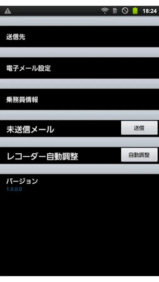 2.アプリの設定画面でメールの送信先、送信サーバ、送信者情報等の設定を行って下さい。