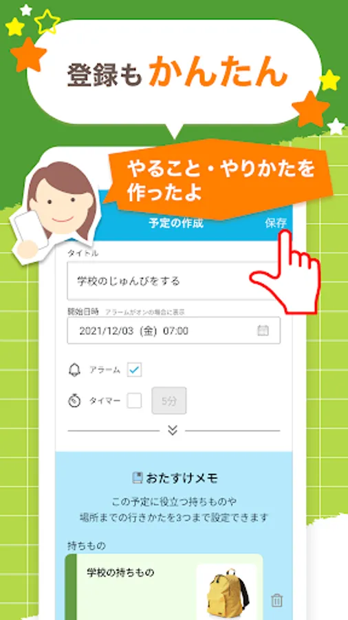 ・ If you have a fixed time such as "leaving home", set an alarm and don't forget it.