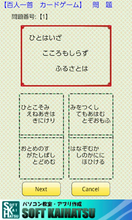 It is an application to learn a fun poem card game. Will be displayed and you will the time to answer the problem, motivation will appear