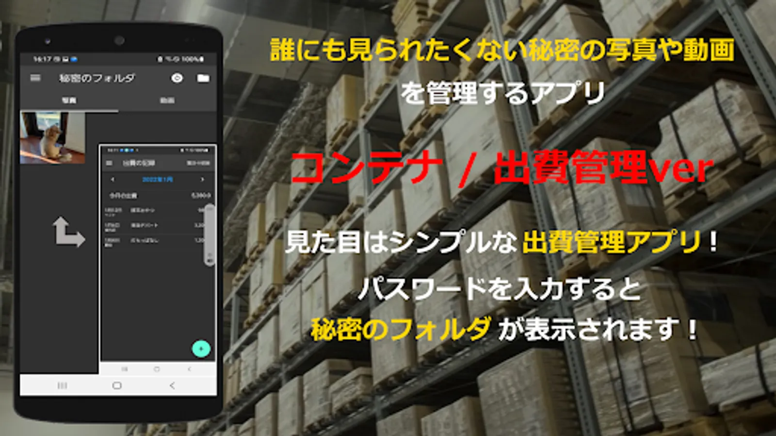 The icons, app names, and screens look like simple spending management apps that you can actually use, and no one knows that there is a secret folder behind them that stores secret photos and videos. The secret folder will be displayed by entering the password you registered yourself in the expense amount field.