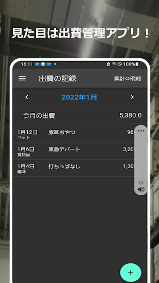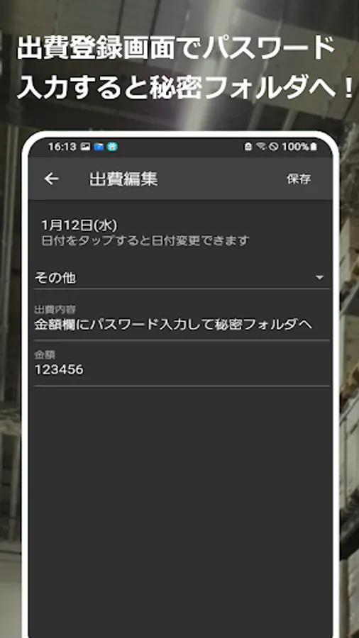 It looks like a simple expense management app (pocket book) that you can actually use, so you can really use it, and even if you try to install it but it's not very usable, it doesn't look unnatural. If you enter the password on the expense registration screen, the folder where the secret photos and videos are saved will be displayed.