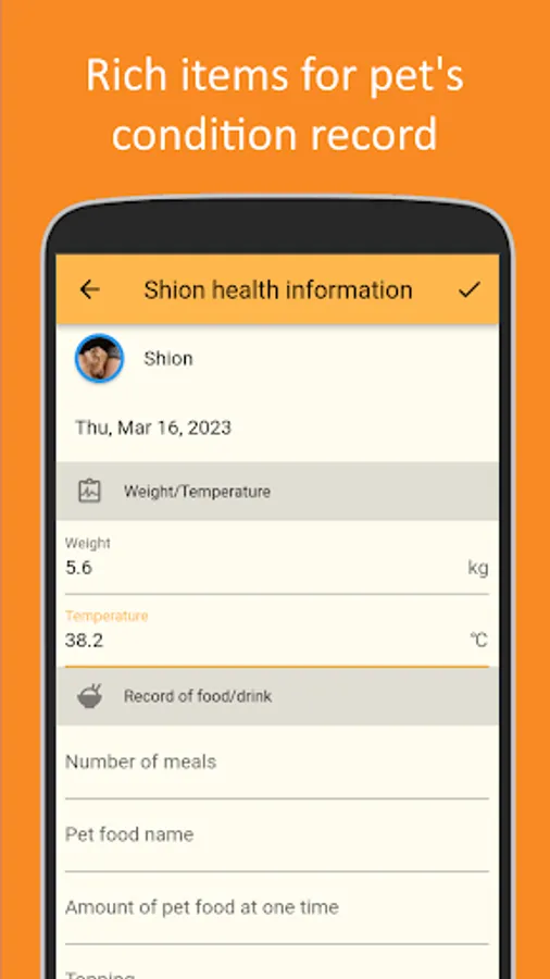 *You can manage some pets in this app. First, create an icon with a pet photo and theme color. Pet information can be identified by the icon.