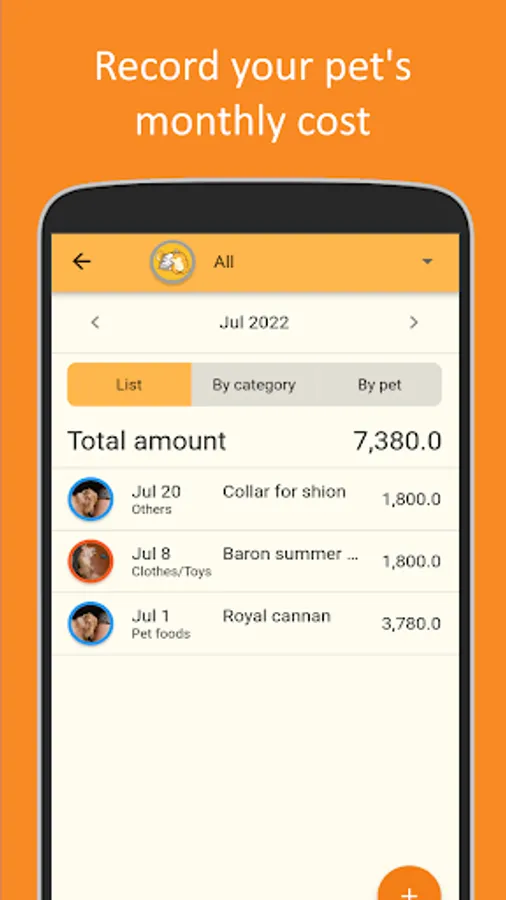 *You can record monthly expenses for pets and manage them by category such as pet food/trimming/toys.