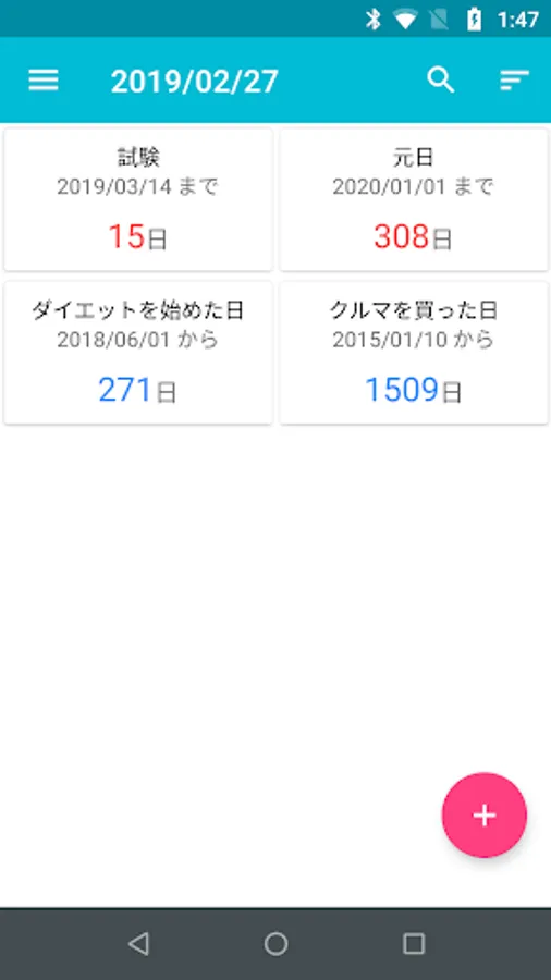 "Days Counter" is an app that simply displays the number of days that have passed since the event you registered, as well as the number of days remaining.