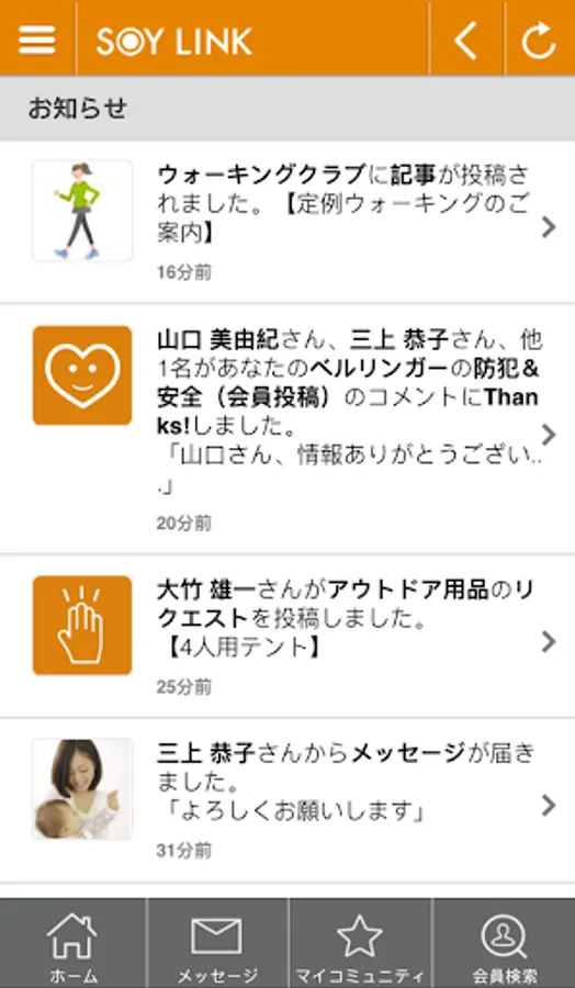 SOY LINKは、住んでいる地域の方と安心して共助の輪を広げるための地域限定コミュニティです。